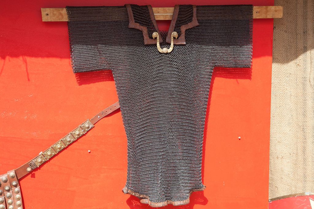 Hastati would usually wear a simple metal circle or square for protection, but Principes and Triarii were both armored with chainmail. The chain shirt, called lorica hamata, covered the soldier’s torso and left his arms and legs free. The rings were riveted together to grant it greater protection against stabbing weapons. A full set weighed about 24 pounds. Belts were used to distribute the weight. Otherwise, it would be piled on the shoulders and wear out the legionnaire more quickly. Despite later advances, lorica hamata remained in use throughout Roman civilization. It was low maintenance, as the constant friction from movement would keep the rings free of rust. Although it was labor intensive to make, a set could easily remain in use for decades. Even though the knowledge of how to make stronger armor existed, economics kept lorica hamata a viable option for many centuries.
