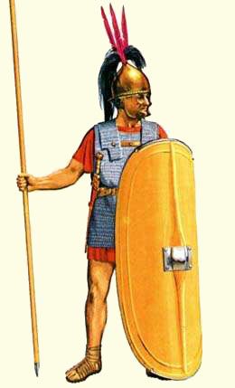 For most of Rome’s history as a republic, it arranged the legions into three main types of soldiers. The Hastati were younger men, who usually could not afford the best equipment. They formed the front line. The second line was the Principes. They were slightly older men with better weapons and armor. They were expected to stand and fight longer than the Hastati. The third and final line was the Triarii. They were older men armed with spears. They were wealthier than the Hastati and Principes, and therefore could afford the best equipment. They were the steadiest troops, only used when the Principes could not drive off the enemy. They were held in reserve as Rome’s last line of defense. Unlike the solid lines of the phalanx, the Roman lines were arranged in a checkerboard pattern. This formation allowed for far greater maneuverability on the battlefield.